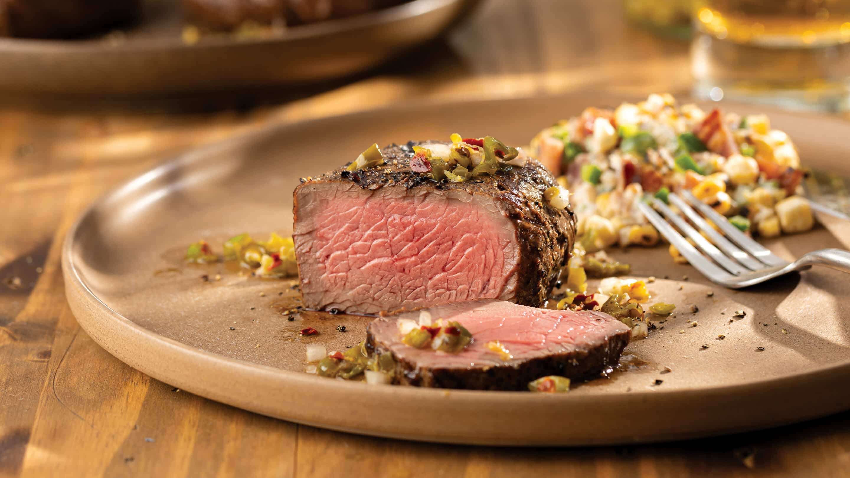This recipe is all about contrast. The Top Sirloin Filet grills up juicy and flavorful, while the shishito pepper gremolata adds a slightly smoky finish that cuts through the richness. Paired with cream and zesty jalapeño popper corn salad, it’s a satisfying mix of bold and balanced flavors that feels effortless yet impressive.